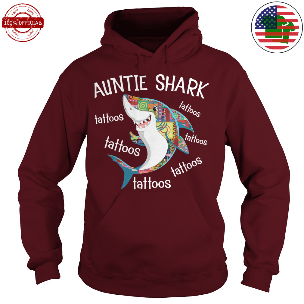 Sharks assaults are uncommon notwithstanding the way that when you’re in the Auntie Shark tattoos hoodie sea you quite often home to a shark because of this reality. Most sharks don’t nibble except if they feel like your value the interest… and since you’re greater than them regularly your not. This wasn’t generally risky by any stretch of the imagination. Had one of those folks (a blue shark) leave the water and make an ideal reentry into the sea around 30 feet from my kayak years back while ocean kayaking off the shore of Maine. He was superbly illuminated by a cloudy skyline so his framework was obviously a shark. Didn’t have sufficient energy to be terrified, simply kind of astonished. After seven days I advised this to a cop I realized whose interest was shark angling. He said indeed, they do that a great deal and no, no one knows why.