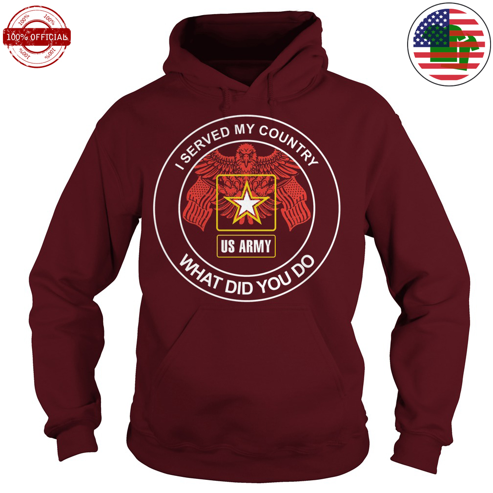 The present Veteran of the Day is Juan Carlos Gachet. He served in the US Army Veteran I served my country what did you do hoodie U.S. Armed force from 1993-2013. Juan filled in as a supply Sergeant and conveyed to Iraq twice, he keeps on filling in as a Facility Revenue Technician at VAMC in Richmond, Va. The present Veteran of the Day is Kyle White. Kyle served in the U.S. Armed force from 2006-2011. He conveyed in 2007 with second Battalion, 503rd Infantry Regiment, 173rd Airborne Brigade Combat Team, White to Aranas, Afghanistan as a detachment radio phone administrator.